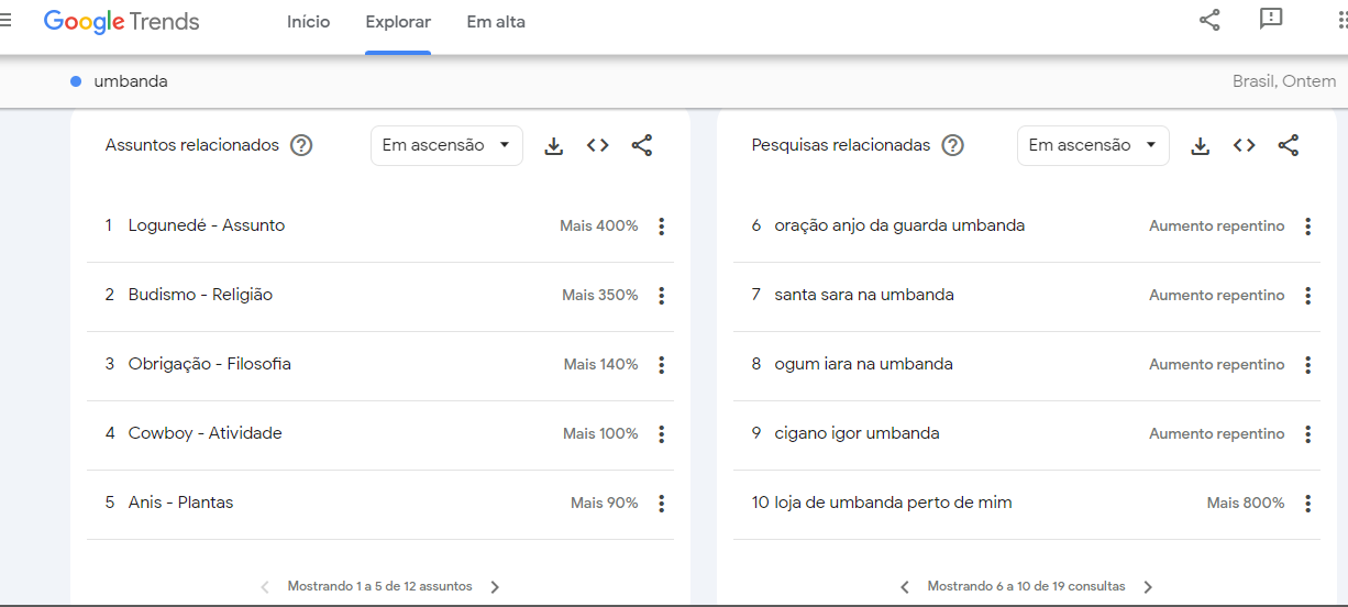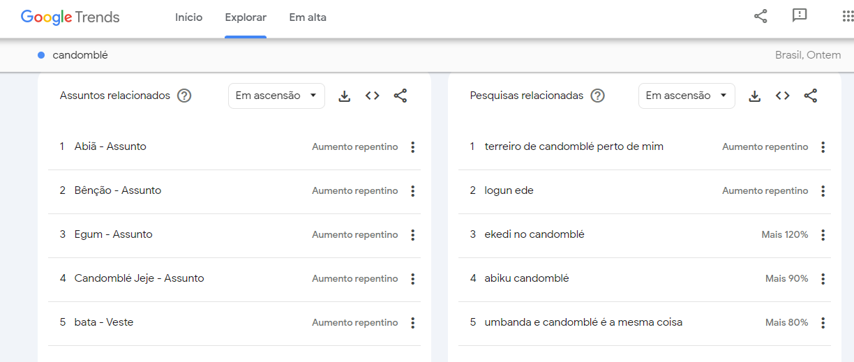 As buscas no Google também são expressivas em relação ao candomblé e suas práticas.
