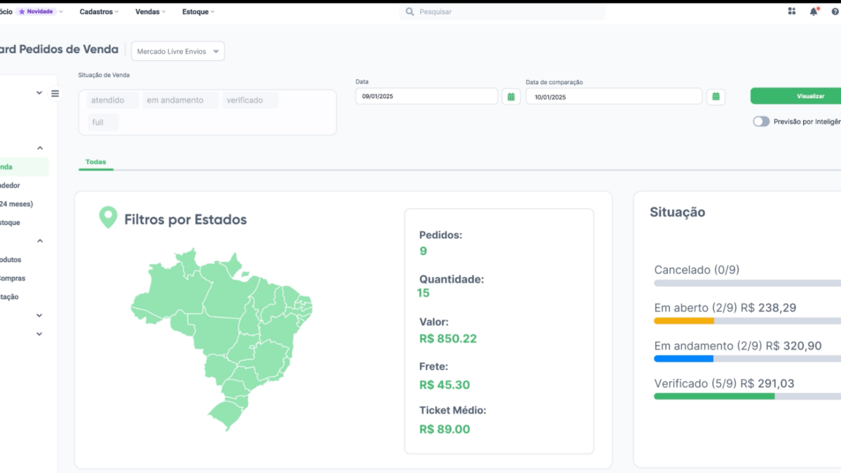 - canais de venda: permite comparar pedidos em diferentes plataformas, como site próprio, marketplaces e redes sociais;