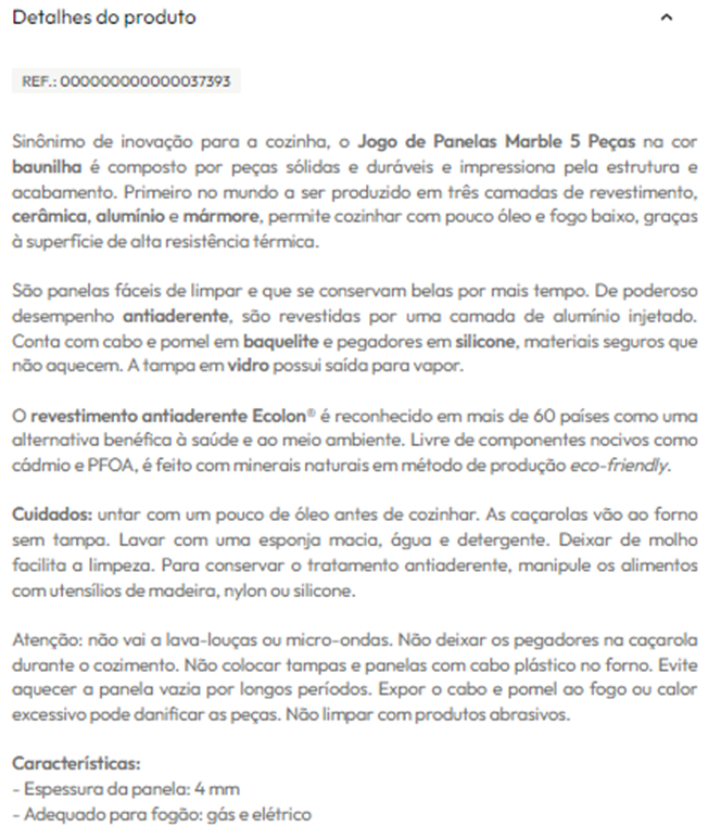 Quando falamos em descrição, nesse caso, nos referimos a parte textual da página de um produto. É onde o cliente encontra as especificações do item.