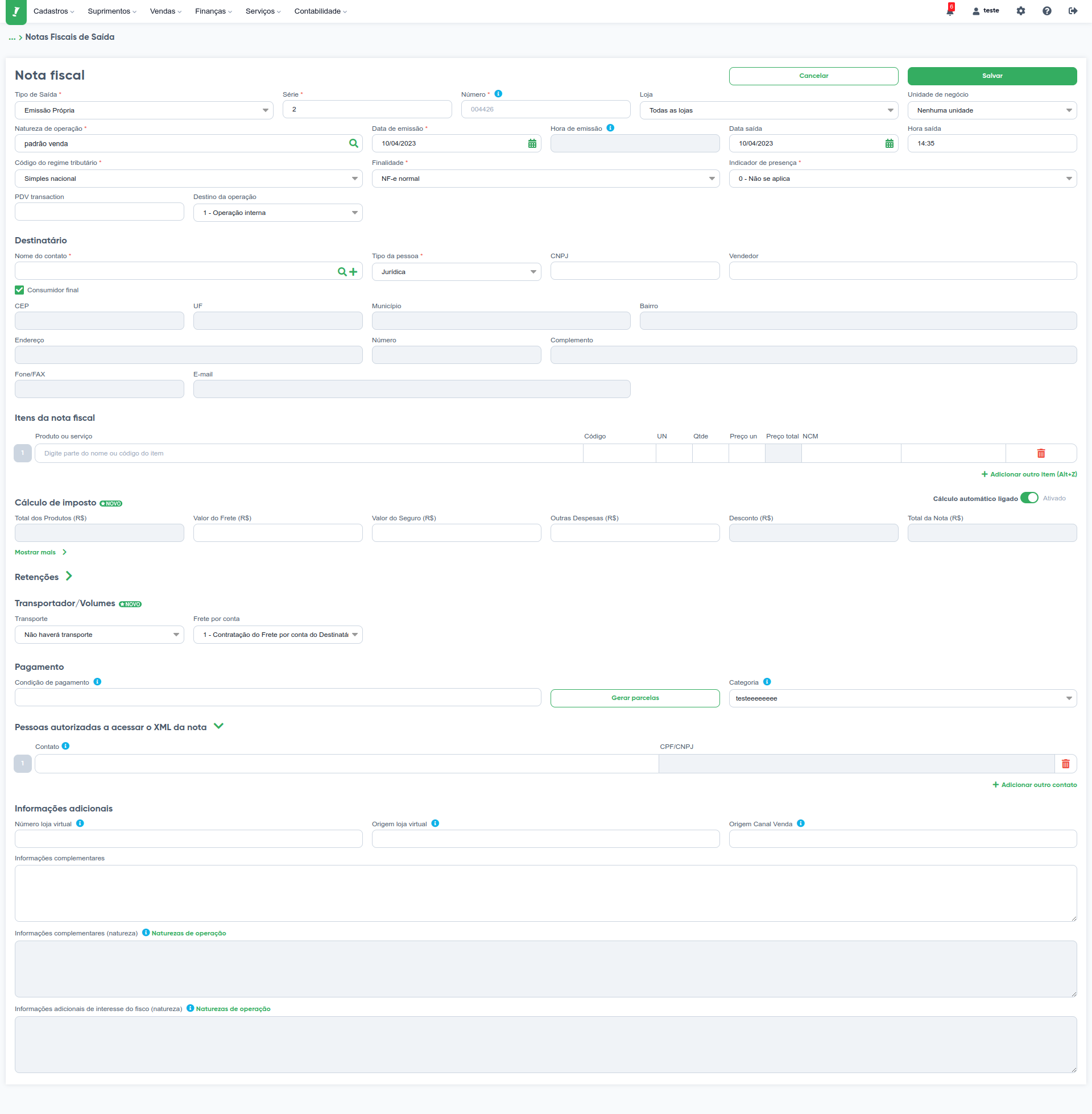 Você pode contar com um ERP para facilitar a emissão de documentos fiscais, como a nota de industrialização. É necessário informar o CFOP, os dados de ambas as empresas e informações sobre os produtos que estão sendo enviados.